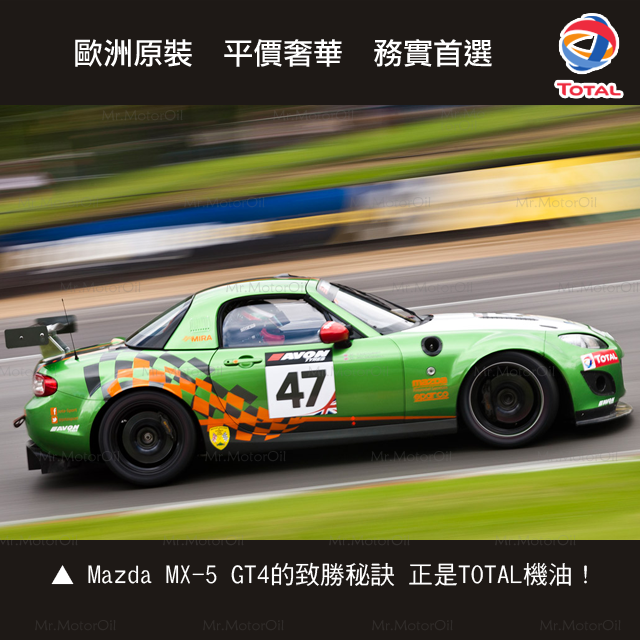 第十二張:Mazda MX-5 GT4的致勝秘訣,正是TOTAL機油!