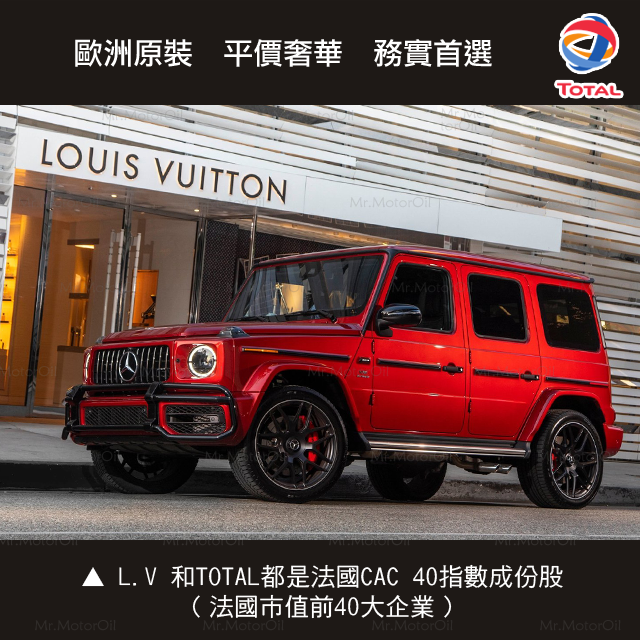 Bonjour(早安)!多麼美好的早晨,餐桌上香氣四溢的可頌麵包(croissant)與鮮奶油咖啡(Caffè crema),提供了一天充沛的活力來源,但拾起Louis Vuitton的公事包,穿上Hermès的樂福鞋,打開車門,咦?是不是還忘記了什麼東西呢?Oui,就是你的法國「TOTAL」機油。
