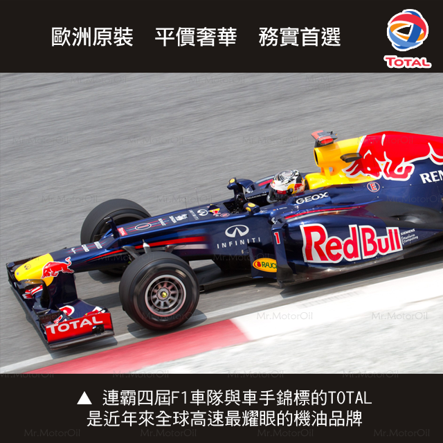 第七張:連霸四屆F1車隊與車手錦標的TOTAL,是近年來全球最耀眼的機油品牌