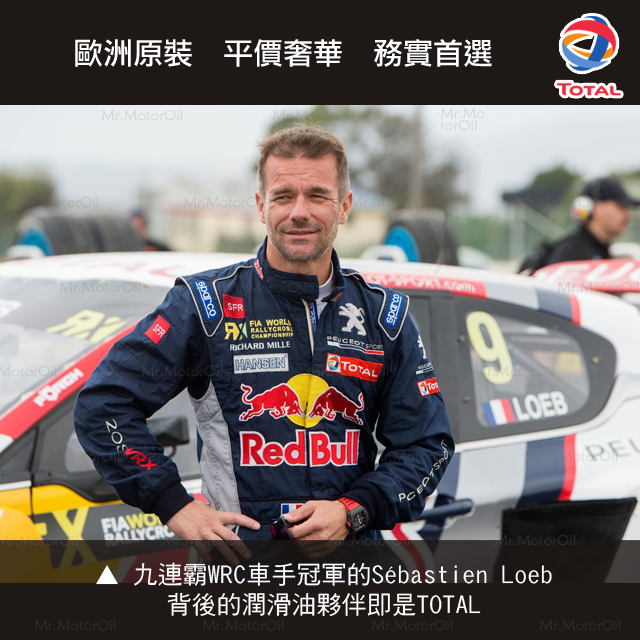 第八張:九連霸WRC車手冠軍的Sébastien Loeb,背後的潤滑油夥伴即是TOTAL