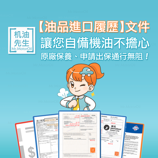 申請新車出保,需要文件 聯絡机油先生客服,我們會儘快把【購買證明、產品數據表PDS(Product Data Sheets)、進口報單、原產地證明文件】郵寄給您,讓您申請出保不卡關