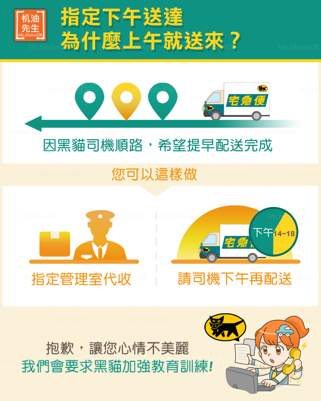Q:指定下午送達,為什麼上午就送來?