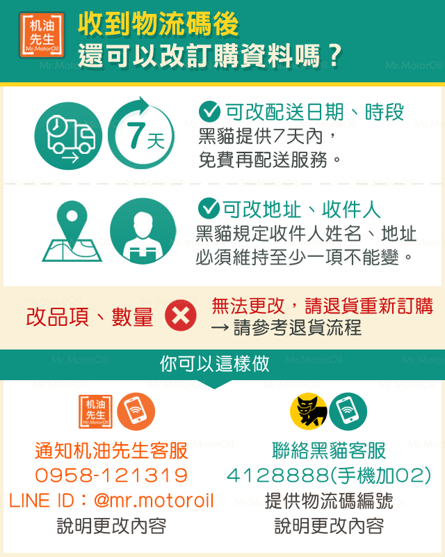 Q:收到黑貓物流碼後,還可以改訂購資料嗎?