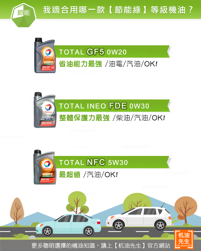 順順開的油電車、汽油車車主,首選【節能綠】機油中【省油能力最強的TOTAL GF5 0W20】机油先生推廣價只要180元/L