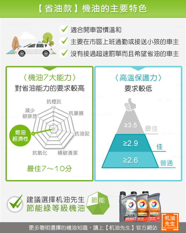 省油款的【節能綠】等級機油對省油能力的要求皆偏高:
