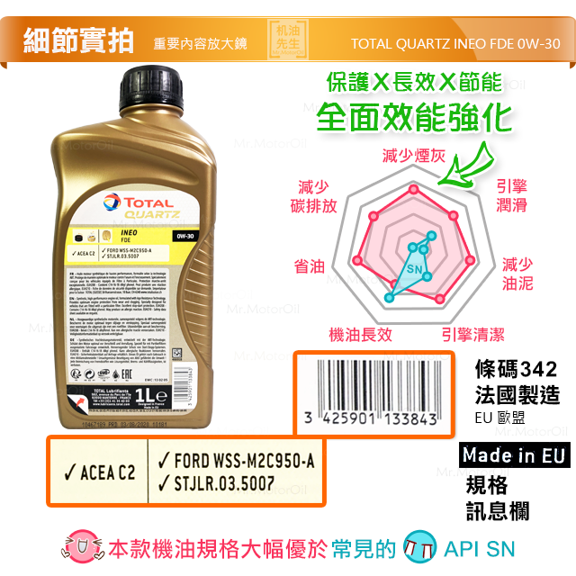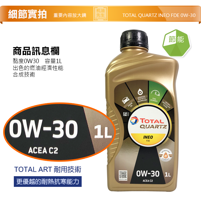 (TOTAL Quartz INEO FDE 0W-30以下簡稱TOTAL FDE 0W30)