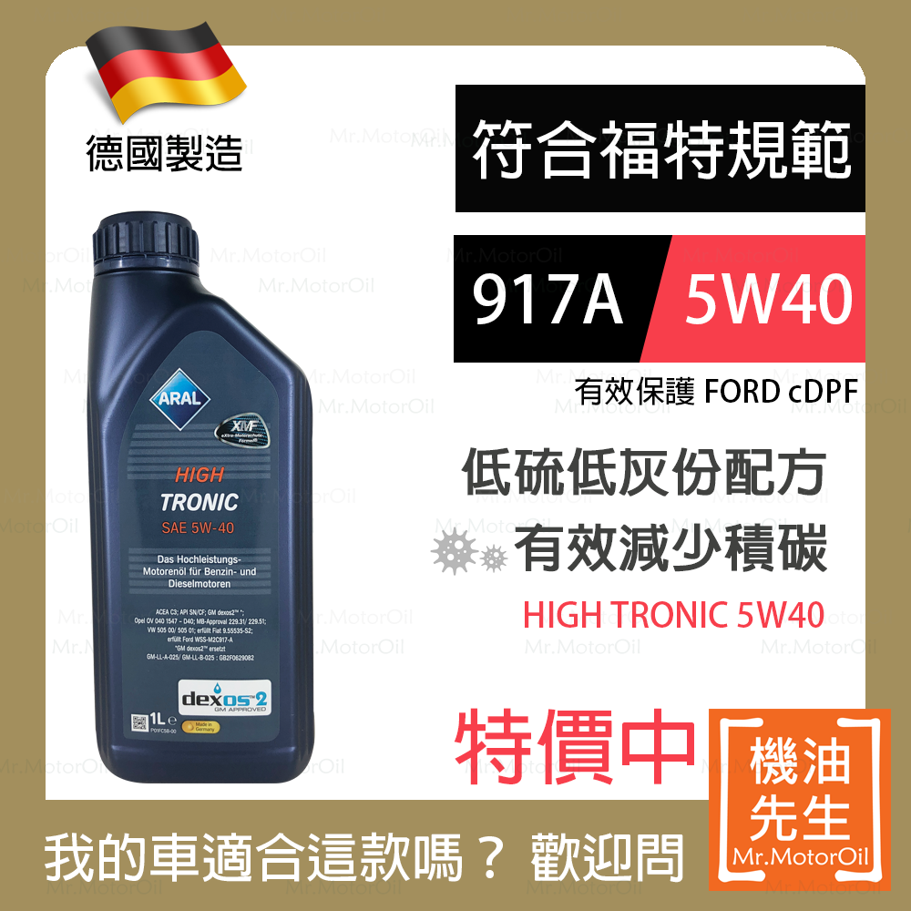 現貨【機油先生】【單瓶1L】德國製ARAL HIGH TRONIC 5W40,福特917A+C3 保護cDPF