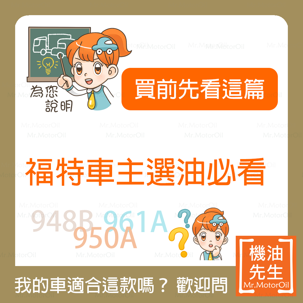 保固內請嚴格按照第 1、2 點要求,以避免保固爭議。目前機油先生有販賣的福特專用機油有: