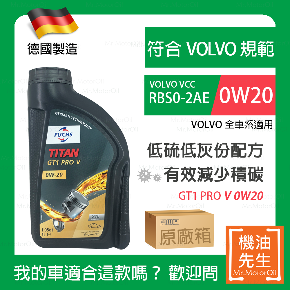 現貨【機油先生】【原廠12L】德國製FUCHS TITAN GT1 PRO V 0W20,VOLVO RBS0-2AE+C5 保護cDPF