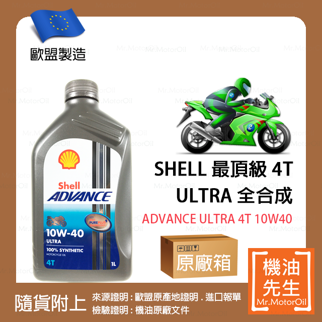 預購【機油先生】【原廠箱12L】SHELL ADVANCE ULTRA 4T 10W40【歐盟製】,機車省油首選
