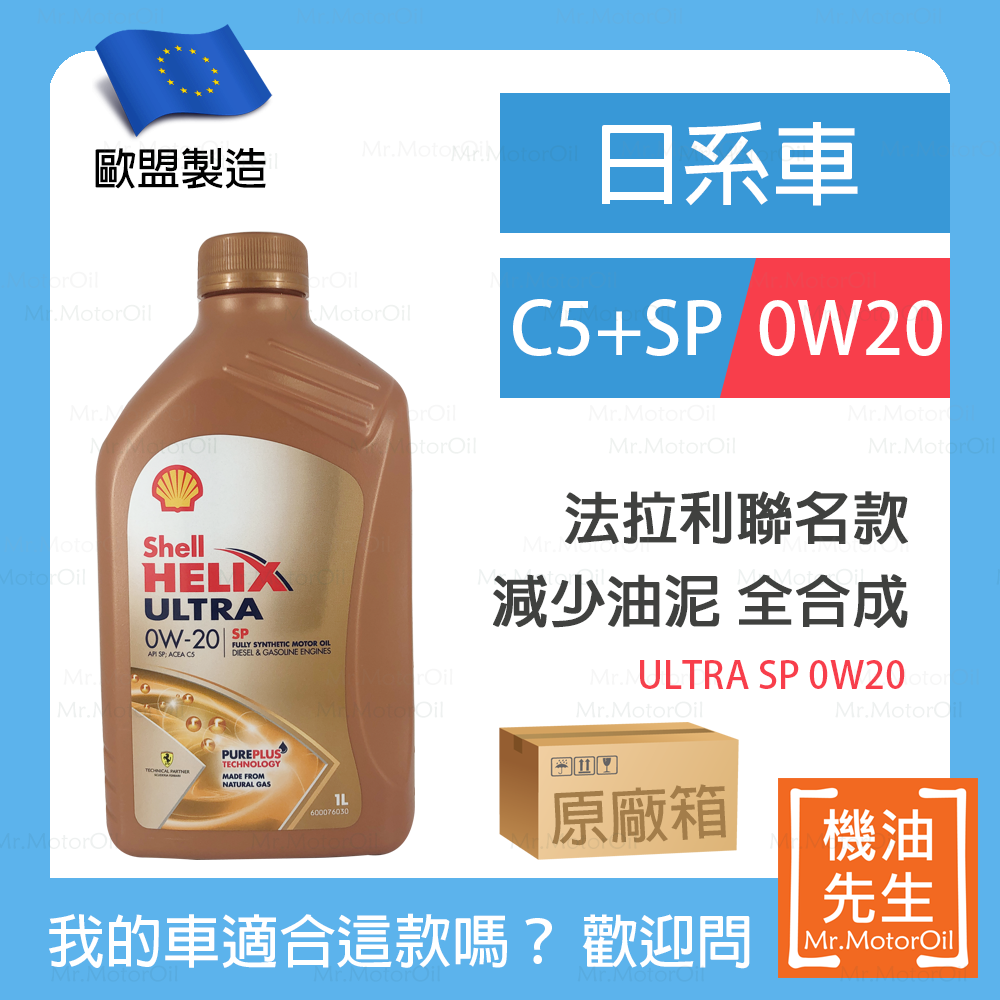 預購【機油先生】【原廠12L】歐盟製SHELL HELIX ULTRA SP 0W20MG全車系,油電、小排量渦輪 C5+SP 雙效合一