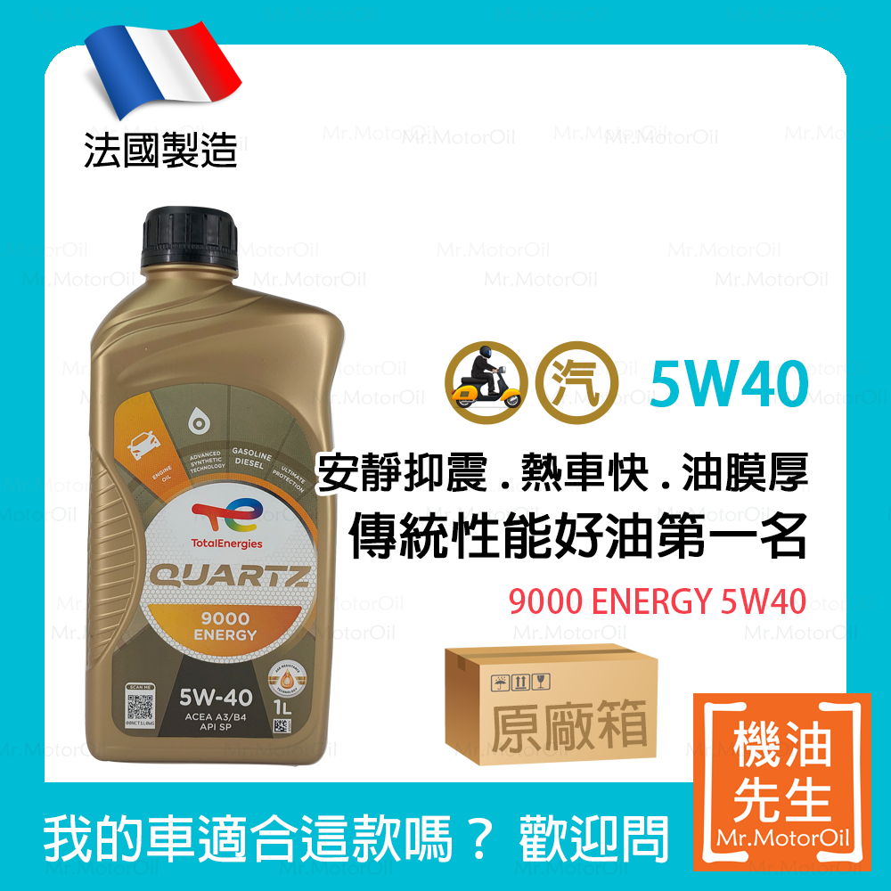 現貨【機油先生】【原廠箱12L】TOTAL QUARTZ 9000 ENERGY 5W40【法國製】,傳統性能好油第一名