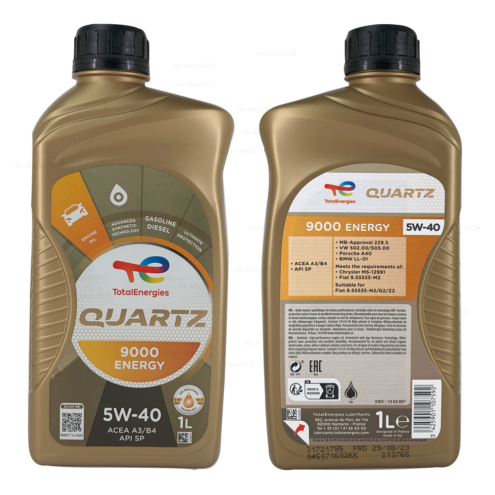 【TOTAL 9000 ENERGY 5W40】規格 ● 車廠傳統性能認證:賓士MB229.5、BMW LL01、福斯VW502/505、保時捷Prochse A40 ● 滿足要求:Chrysler MS-12991、Fiat 9.55535-M2 ● 向下兼容:Fiat 9.55535-N2/G2/Z2 ● 符合歐盟要求:ACEA A3/B4 ● 符合美日要求:API SP (防止低速預燃)