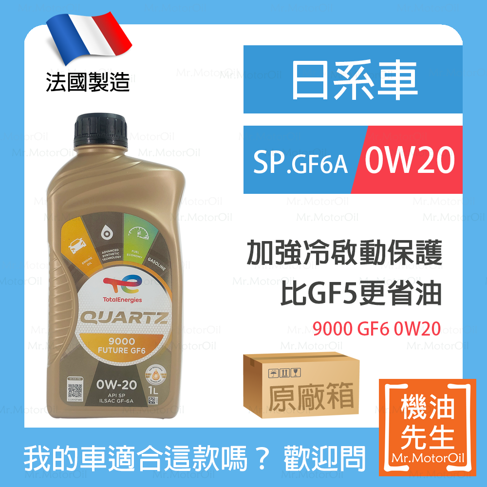 現貨【機油先生】【原廠箱12L】TOTAL QUARTZ 9000 Future GF6 0W20【法國製】,油電 GF6A+SP 預防低速預燃