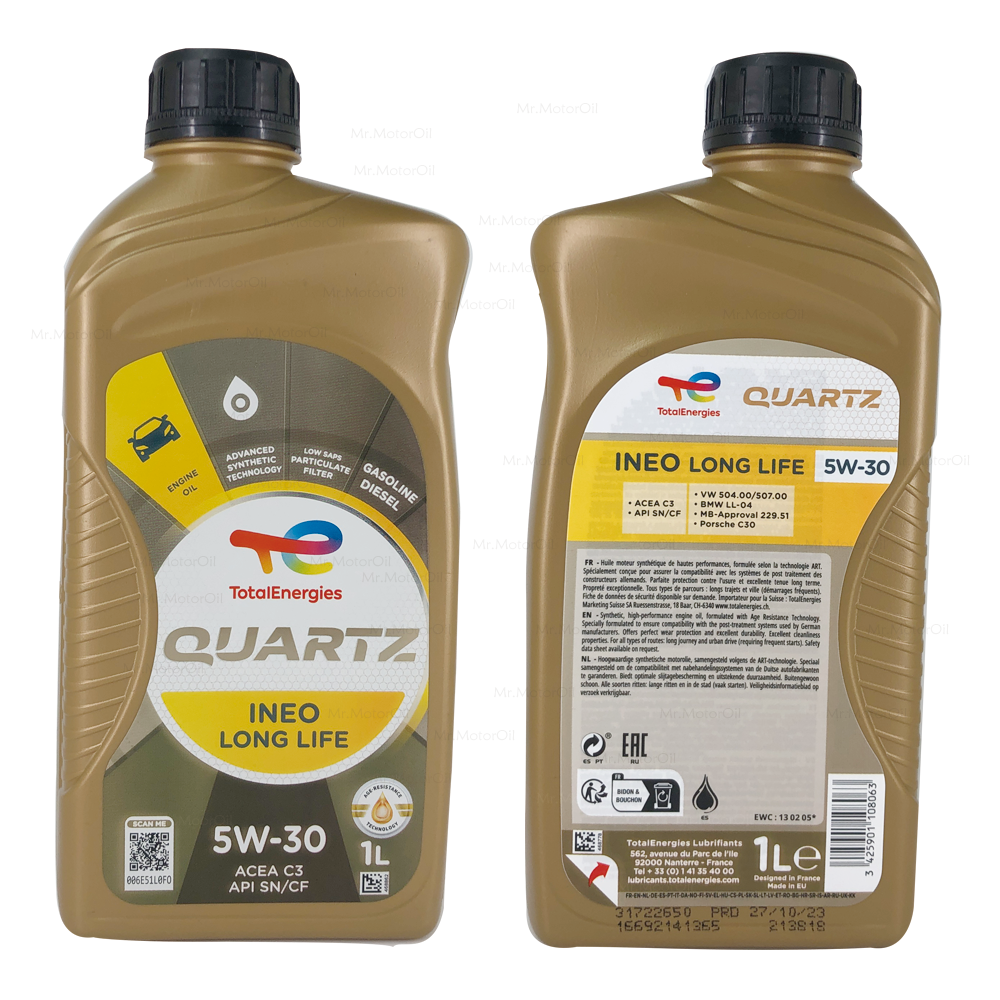 ▶皆可使用 🆅柴油車 🆅汽油車 🆅渦輪車 ▶機油等級【頂級金】是TOTAL最頂級機油 ▶機油規格 🆅車廠最頂級認證 🆅低硫低灰份 MB 229.51 BMW LL04 VW 504/507 Porsche C30 — ACEA C3 API SN