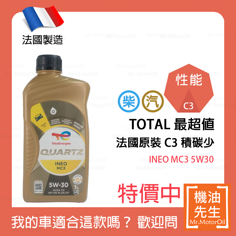 預購【機油先生】TOTAL QUARTZ INEO MC3 5W30【法國製】,最超值C3機油