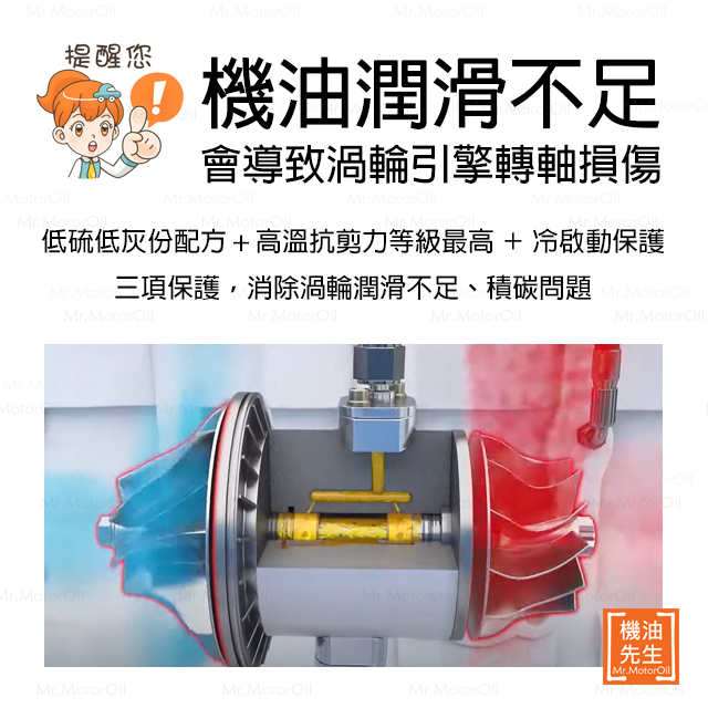 ✓ 機油先生非常建議想好好照顧汽油渦輪引擎的車主,新車保固內就升級改用「有原廠要求認證,又是低硫低灰份配方機油」,這才是保護汽油渦輪引擎的最佳選擇!