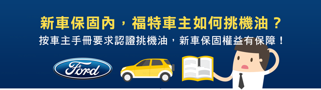 新車保固期內法律有保障車主選擇機油的自由!想用其他品牌機油也OK,挑選時必須注意機油是否有手冊上要求的福特認證。最簡單的方法,就是拍下車主手冊/容量與規格 章節裡的 引擎機油規格 頁面,也可以上台灣福特官網 查詢車主手冊電子檔 截圖,傳給機油先生LINE客服,直接由客服判斷及推薦能帶回原廠保養的機油給您~